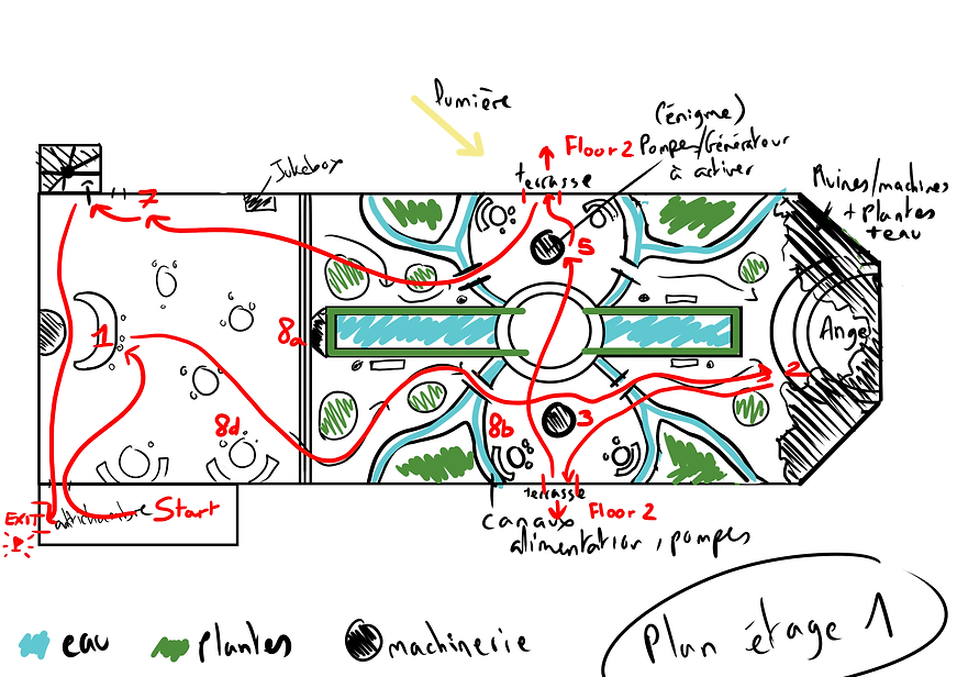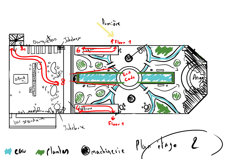 L'escape room se déroule dans un immense jardin sous-marin, avec un bar au niveau de son entrée, ainsi qu'un étage au bar et deux plateformes en hauteur qui surplombent le jardin.